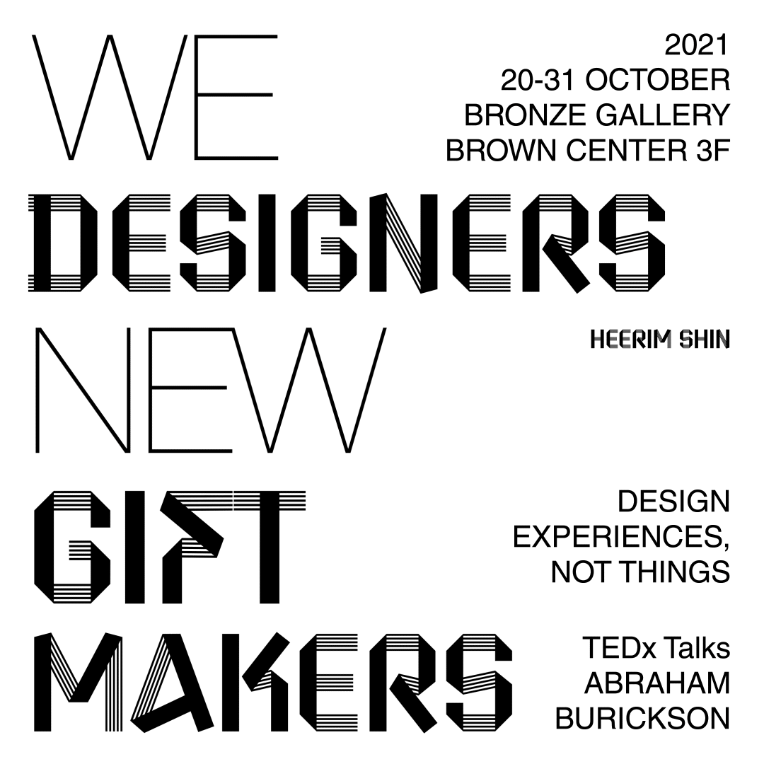 Based on conceptual artist Abraham Burickson's TED Talk, I understood his message to be that "to design something is to create an experience." Therefore, he emphasized that designers should be "experience makers" who enhance people's relationships and create meaningful experiences. He referred to these experiences as "gifts." I titled the exhibition "We Designers, New Gift Makers" and created a gift box composed of four unique shapes that represent people's diverse experiences. This idea was inspired by the empty box in <The Little Prince>.